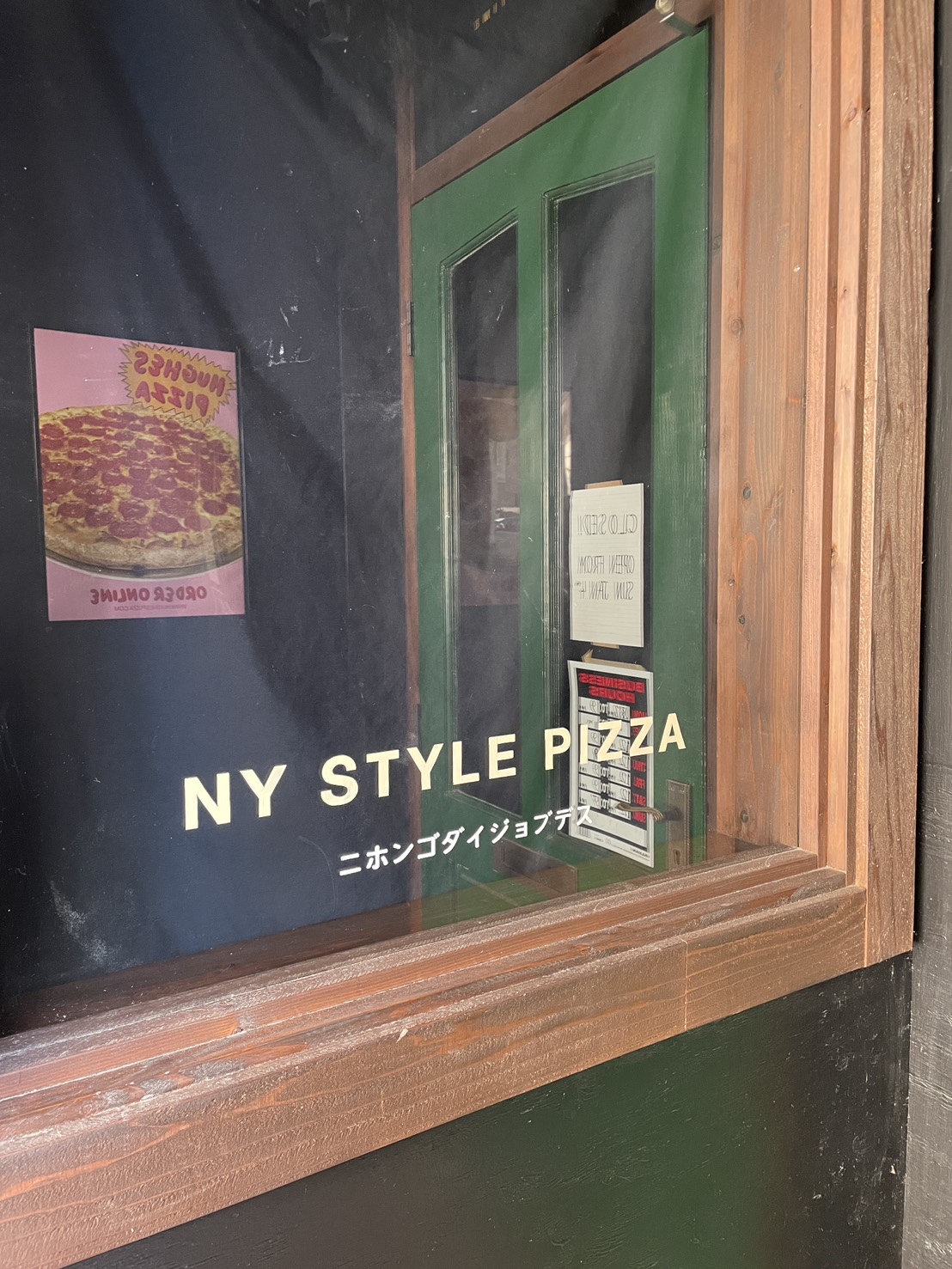 ニューヨークスタイルのピザ屋さん。本当に通じるのかいまいち確信が持てない「ニホンゴダイジョブデス」の一言。(調べてみたところ、ダイジョブらしいです)