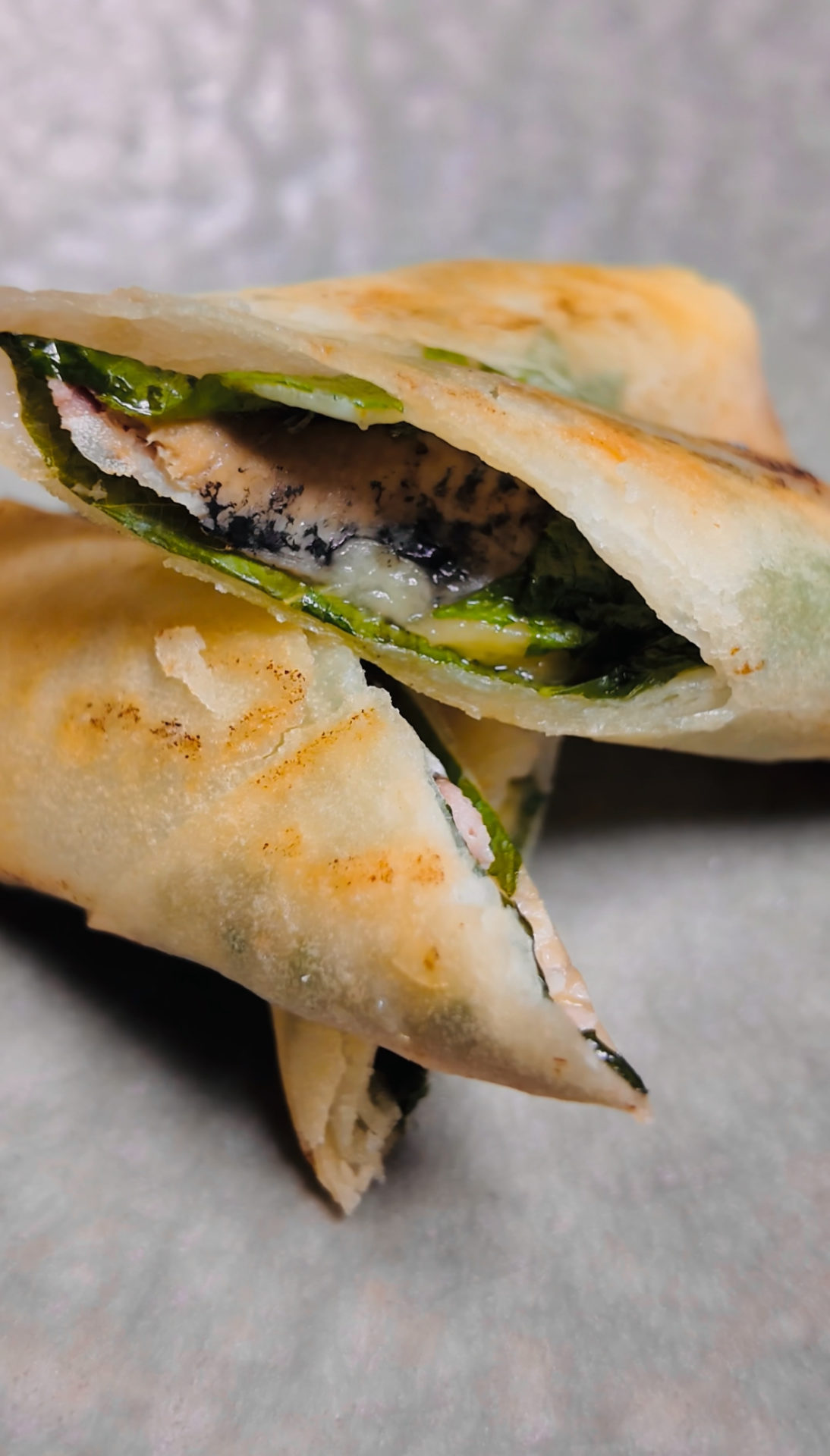 秋刀魚の旨みと、火が入りトロッとしてジューシーな無花果のほのかな甘みが楽しめる大人な春巻きです。アクセントと液漏れ防止の大葉の香りがまたよく合います。