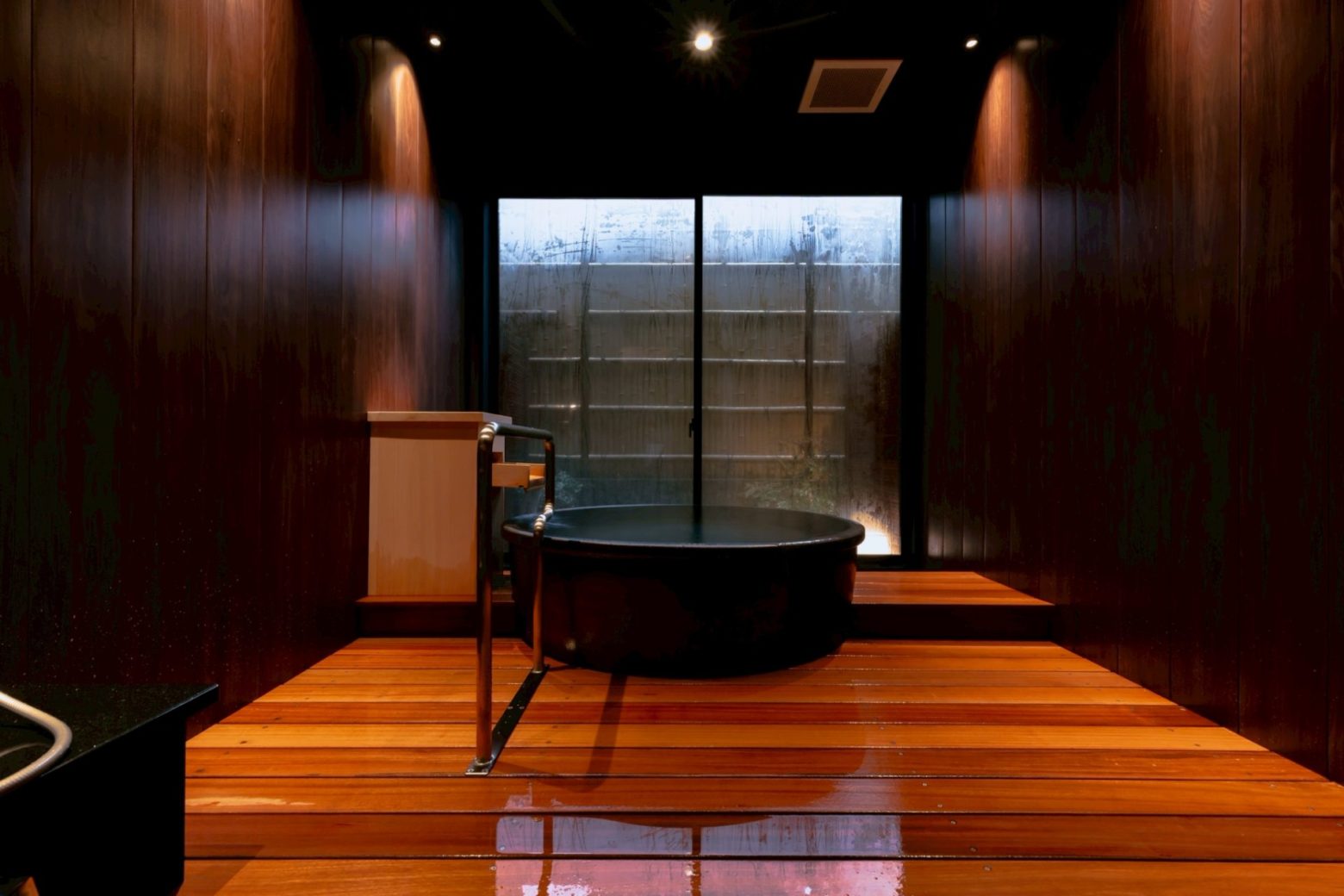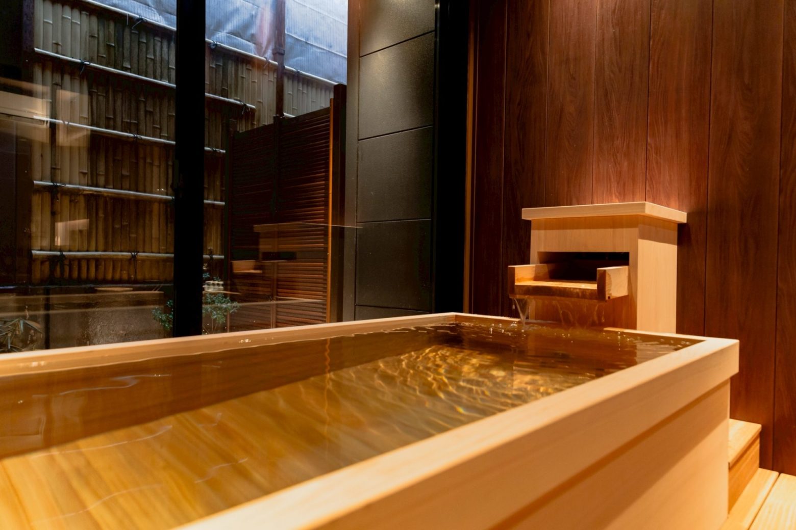 安曇野市の穂高温泉郷にある「割烹旅館 山彦」にて、貸切風呂の設計デザイン・施工のお手伝いをさせていただきました。安曇野の名湯と称される天然温泉と豊かな自然に囲まれた環境の中で、さらなる付加価値の創出を目的に、訪れる人がゆったりと過ごせる、ぬくもりある貸切風呂を計画しました。檜製の浴槽を据えた「檜の湯」と、信楽焼きの浴槽を据えた「壺の湯」の2部屋を設け、それぞれ異なる趣を演出。窓から覗く坪庭が四季の移ろいを感じさせる空間に仕上げました。
